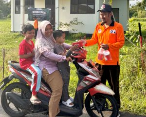 Suasana depan Sanggar Bakti Kwarran Kembaran tampak berbeda pada Rabu (11/3/2026) sore. Sejumlah anggota Satgas Pramuka Peduli terlihat membagikan paket takjil kepada warga yang melintas di kawasan tersebut menjelang waktu berbuka puasa.